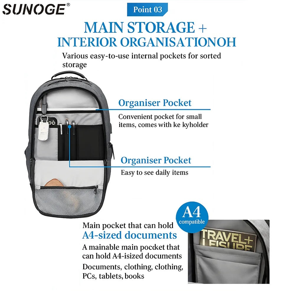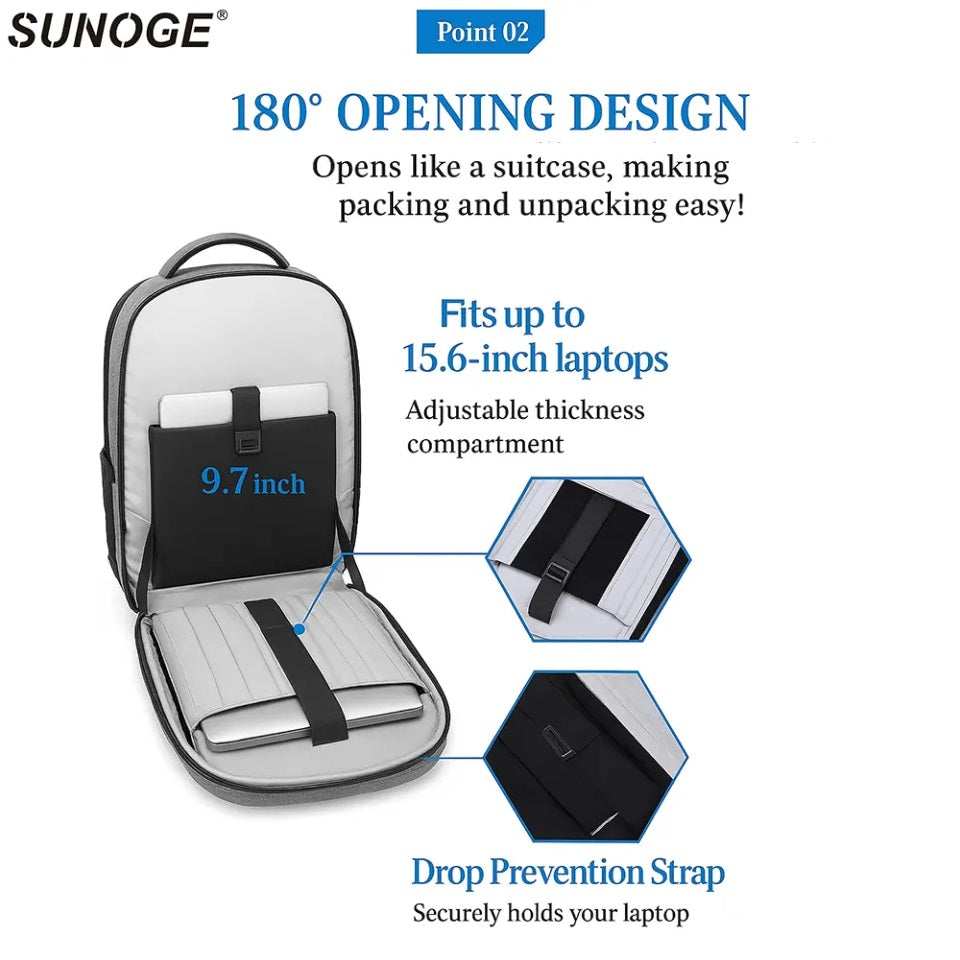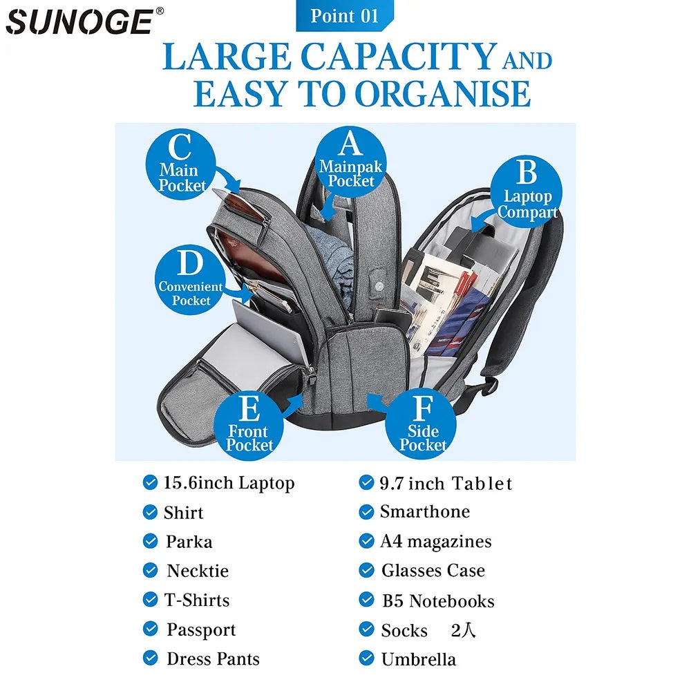 The SUNOGE Water-Resistant Anti-Theft Backpack with USB Port is designed for professionals, students, and travelers who need security, organization, and modern style in one smart backpack.