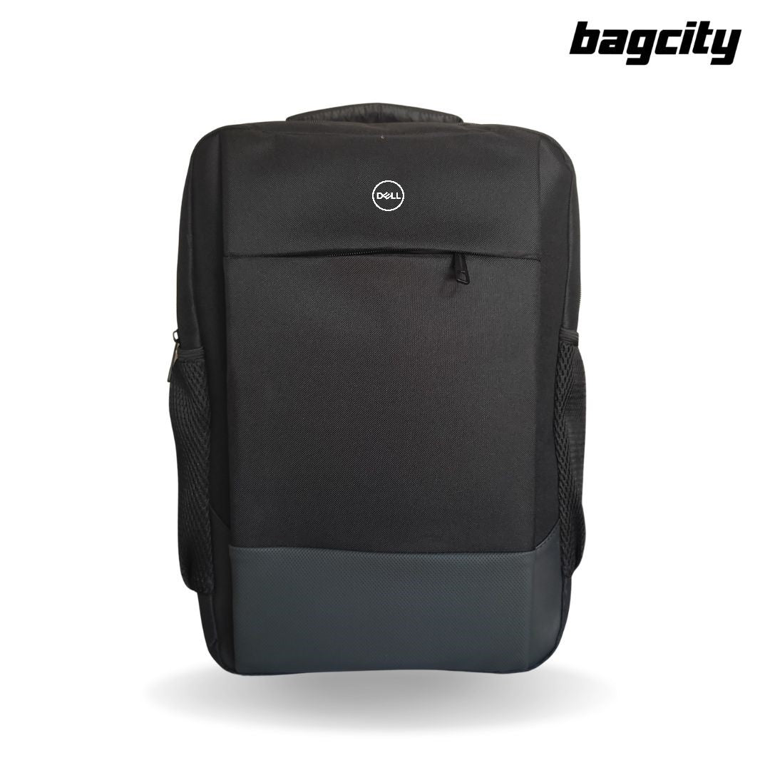 Additional features include side mesh pockets for water bottles or umbrellas, a front pocket for quick-access items, and breathable mesh padding on the back for comfortable wear during long days. The subtle Dell-inspired logo adds a professional edge to the design, making it perfect for both academic and corporate settings.
