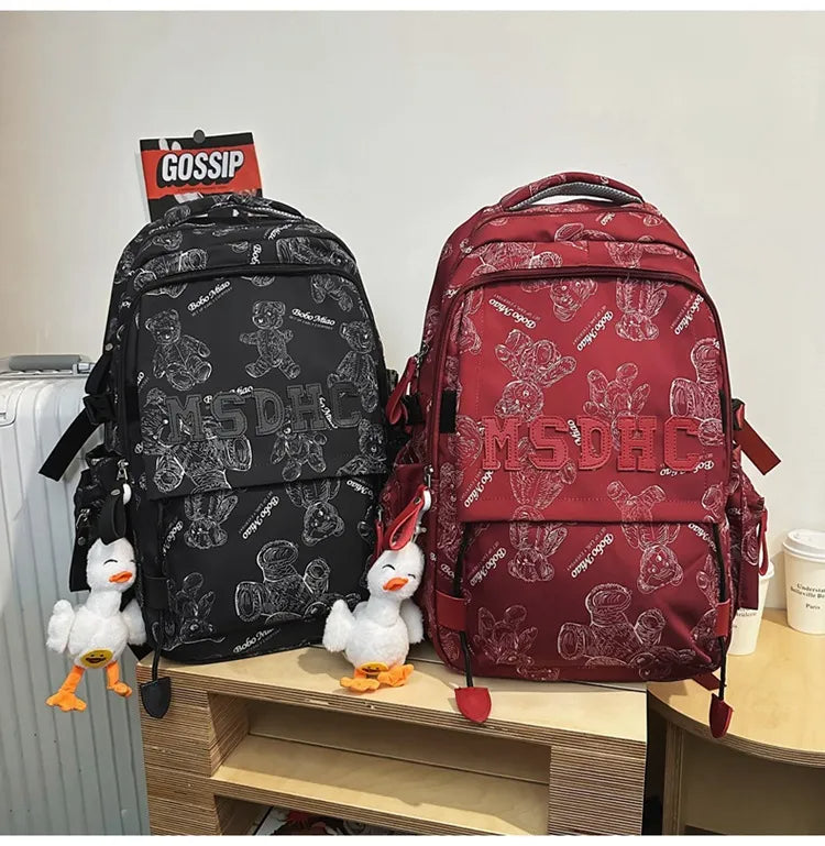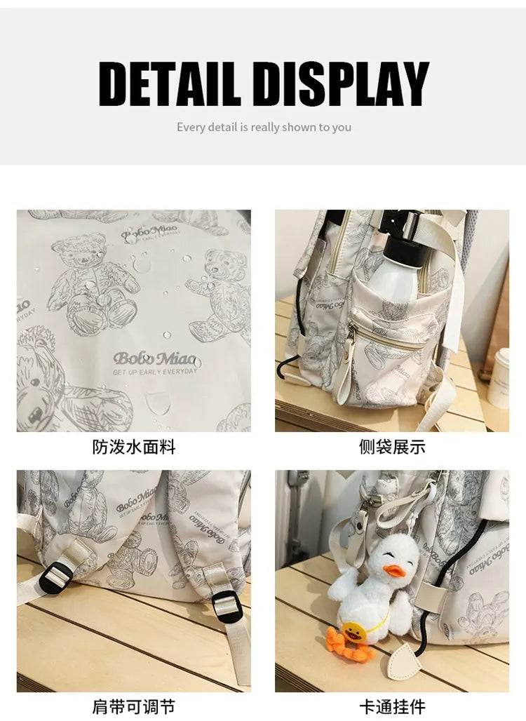 This cute bear student backpack is designed to combine style, durability, and practicality, making it an ideal choice for students and everyday use. Featuring a modern and personalized appearance with unique prints and decorative elements, it adds a fun and eye-catching touch to your daily look.