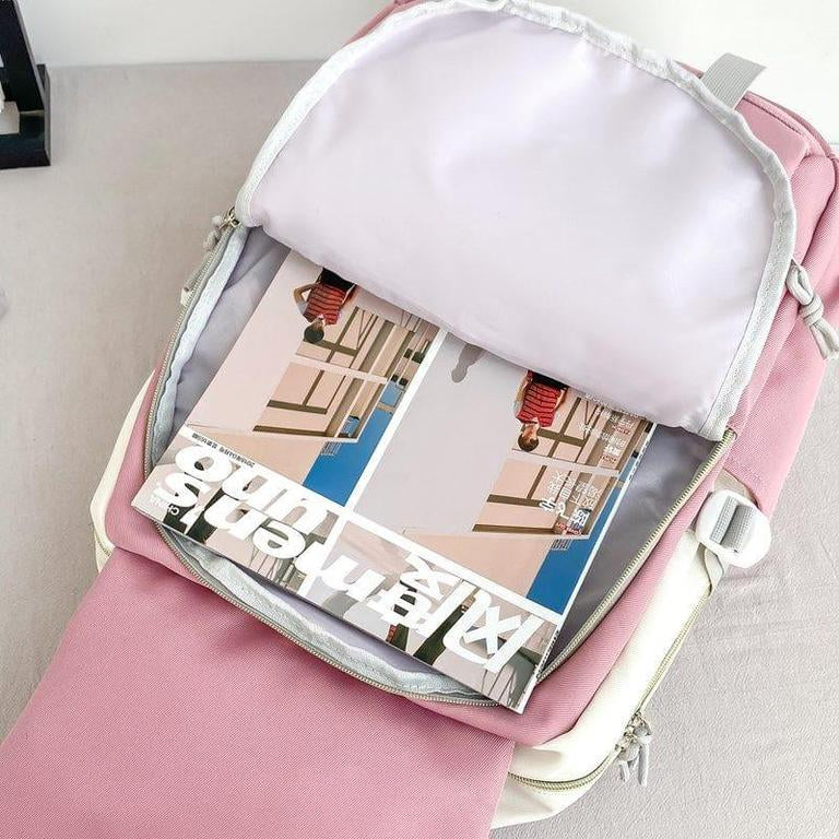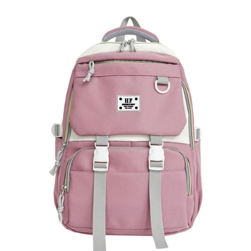 HF Trendy Lightweight Backpack – Stylish School, College & Travel Bag (Pink, Black, Blue)