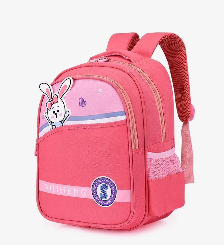 Made from high-quality nylon material, it is water resistant, washable, and scratch resistant, ensuring long-lasting use even with daily wear and tear. The spacious main compartment easily fits books, while the large front pocket is ideal for storing a lunch box, pencil case, or extra copies. Elasticated mesh side pockets securely hold water bottles to prevent spills.