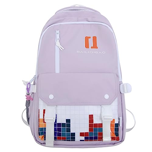 Its stylish block design and soft purple color make it a favorite choice for girls and teenagers. A luggage strap at the back allows easy attachment to suitcases, making it perfect for travel.