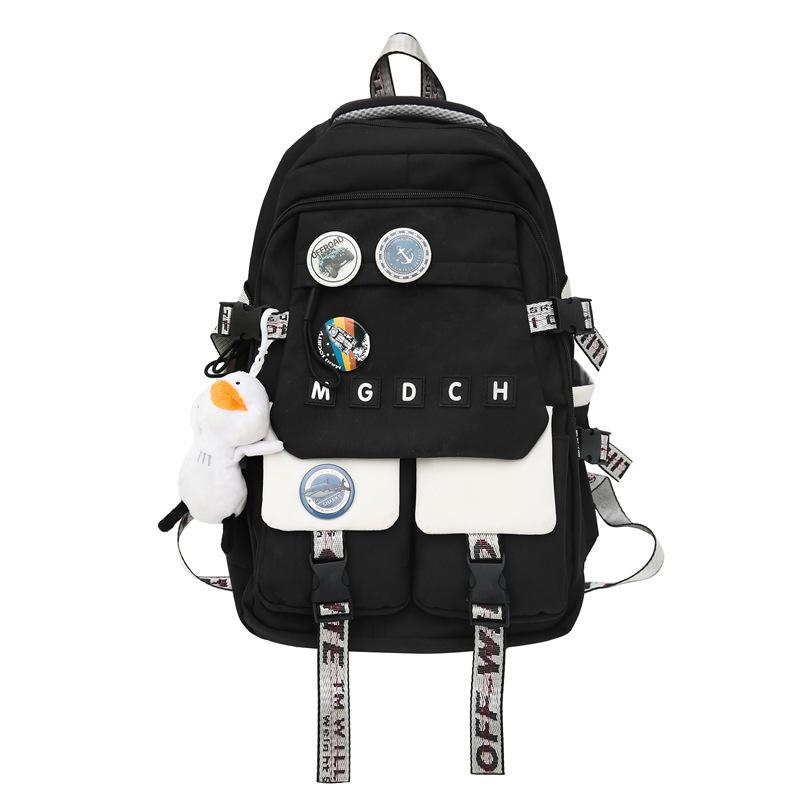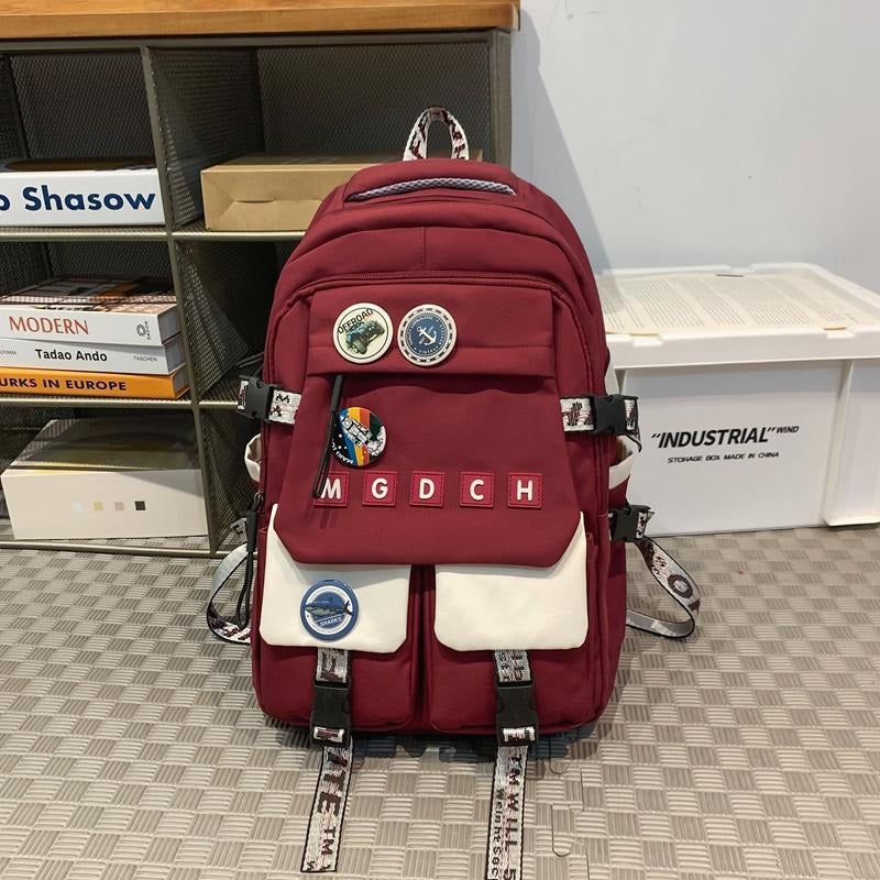 Its color block letter print adds a modern touch, while the strong handle and durable zippers ensure reliability and long life. Ideal for students, commuters, or travelers who prefer a bold yet practical backpack.