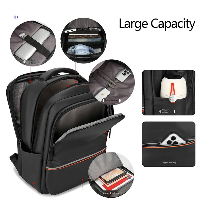 Crafted from premium waterproof Oxford fabric with a scratch-resistant leather film coating, this backpack protects your essentials from rain, wear, and daily rough use. The double-compartment design includes a separate padded laptop section that safely accommodates laptops up to 15.6 inches.