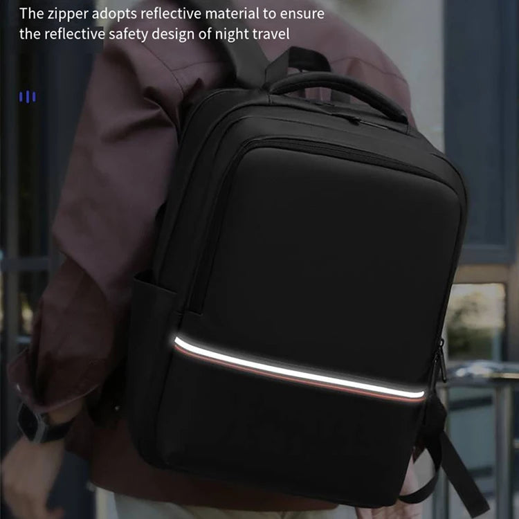 A reflective front safety strip enhances visibility during night travel, while the trolley strap makes airport travel effortless. With multiple organizer pockets, side pockets, and a quick-access front pocket, everything stays neat and within reach.