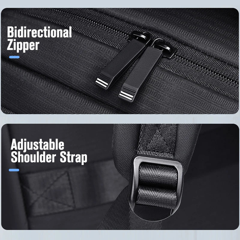 Travel Ready: Trolley hanging strap & bidirectional premium zippers