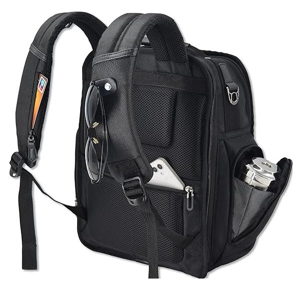 Comfort is enhanced with air mesh padded shoulder straps and a 3D-mesh padded back panel, allowing breathability and reduced strain during long commutes or business travel. The sturdy construction ensures the backpack remains reliable whether used for office routines or frequent professional trips.
