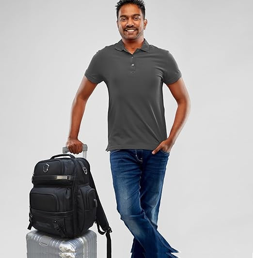· Premium executive business backpack with leather-finish & ballistic nylon build